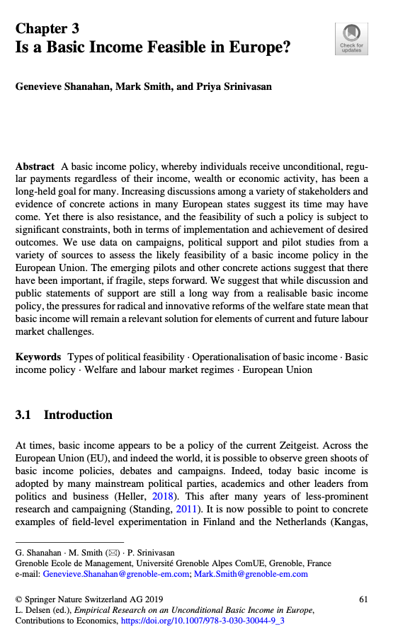 Genevieve Shanahan, Mark Smith and Priya Srinivasan. (2020). Empirical Research on an Unconditional Basic Income in Europe.