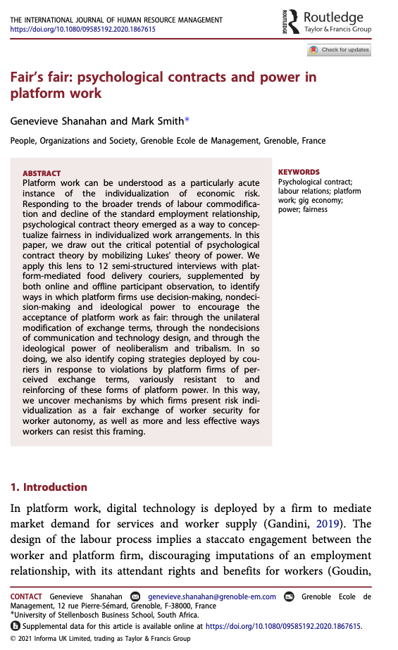 Genevieve Shanahan and Mark Smith. (2021). International Journal of Human Resource Management.