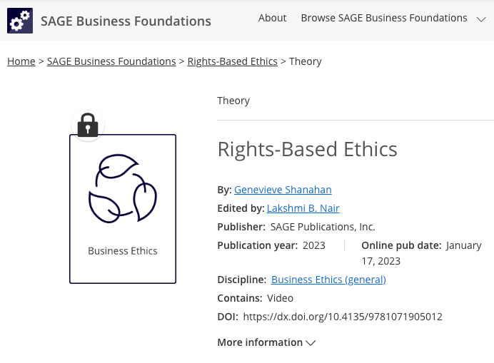 ­­In this chapter I define rights-based ethics, and discuss its origins, limitations, and active lines of research. I examine how the rights-based ethics approach can be applied in business and how it is used to address contemporary social problems. The chapter offers readers the opportunity to practice using the rights-based ethics framework in addressing workplace moral dilemmas, and raises questions regarding the role of business in society more broadly.