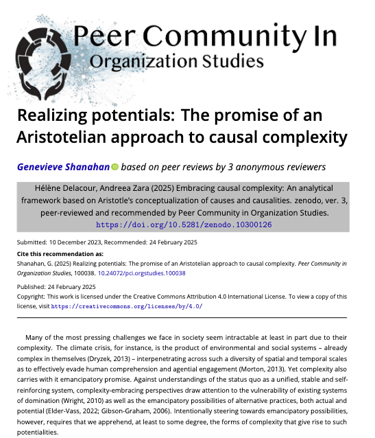 PCI Organization Studies recommendation – Realizing potentials: The promise of an Aristotelian approach to causal complexity